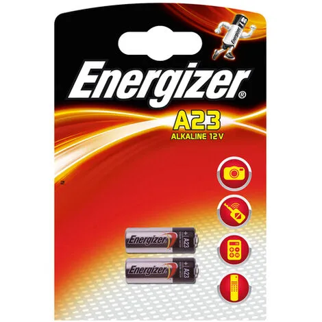 Energizer pile alcaline, modèle A23, 12 volts. 2 Piles sous blister. Modèles équivalents : 23A, AG23, E23, E23A, GP23A, K23A, L1028, LRV08, MN21, P23GA, R23A, V23A, V23GA, VR22.