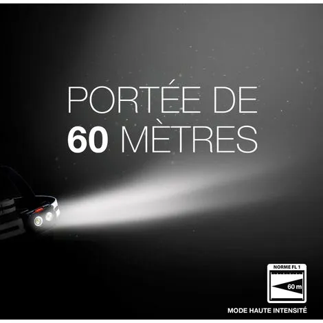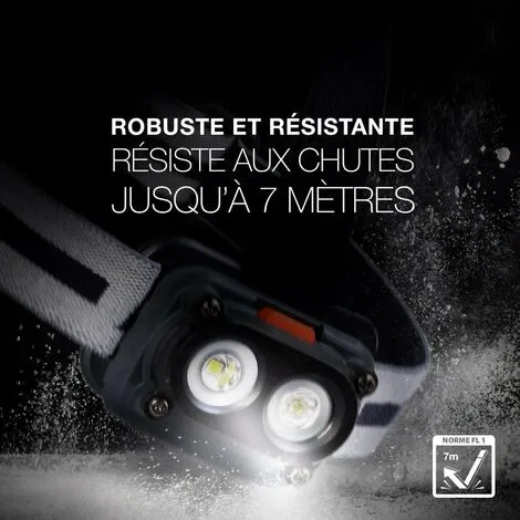 Lampe frontale ultra puissante (250 lumens, portée 60m), waterproof, résiste aux chutes de 7m, tête pivotable et détachable (avec aimant). Fonctionne avec 3 piles AAA incluses.