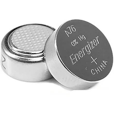 Energizer alkaline battery, model A76, 1.5 Volt. 2 Batteries in blister pack. Equivalent models: LR44, 1166A, 1128MP, A357, AG13, D76A, G13A, GA76, GPA76, L1154, LR1154, L1154, RPX675, S76, TL13, PX76A, PX675A, V13GA.