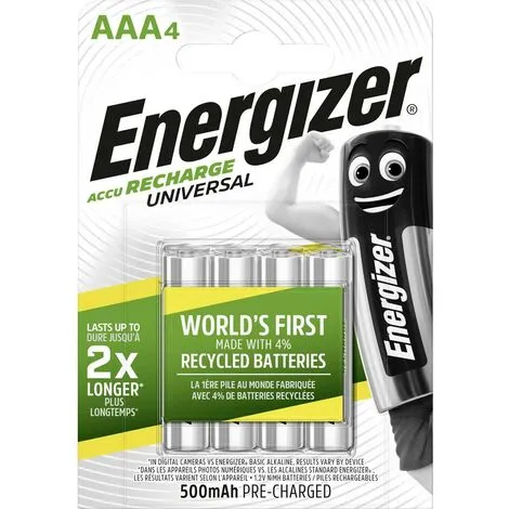 Piles rechargeables NiMH LR03 500 mAh Energizer Universal, lot de 4